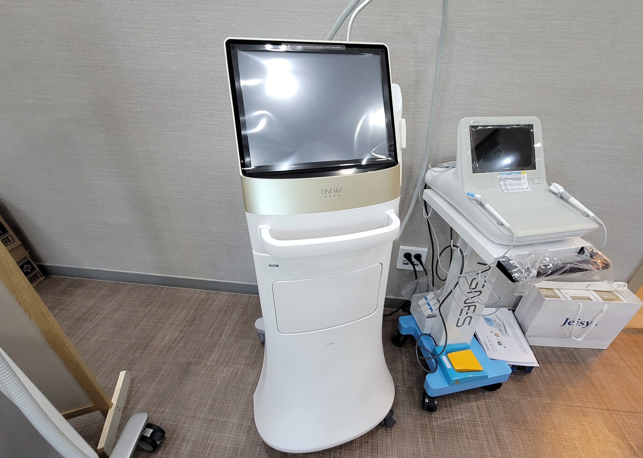리니어지는 집속형 초음파 트랜스듀서에서 출력된 에너지의 열작용을 이용하여 조직을 응고시켜 리프팅 효과를 내는 초음파 리프팅 장비입니다.