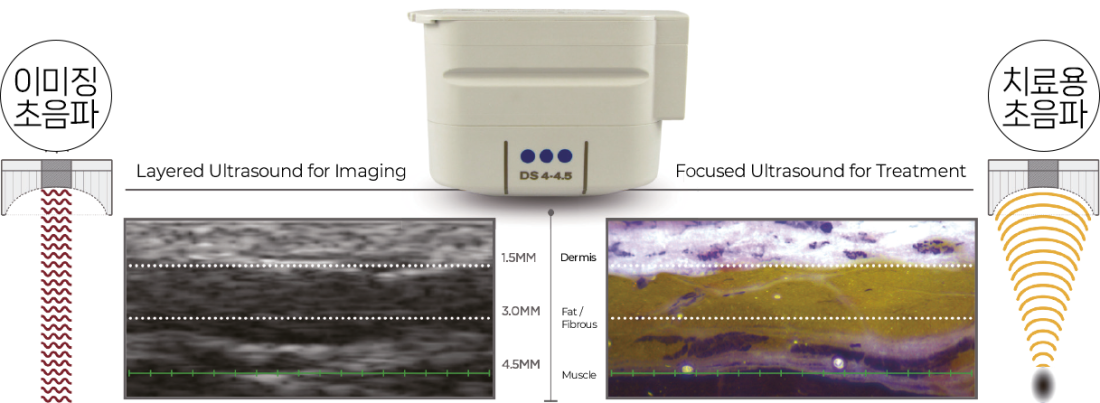 다른 HIFU 장비에 비해 스팟 크기가 상대적으로 크며, 한 번의 조사로 넓은 영역에 에너지를 전달할 수 있어 효율적인 시술이 가능합니다. 다양한 카트리지를 통해 피부의 특정 층(표피, 진피, SMAS층)을 정밀하게 타겟팅하며, 꾸준한 콜라겐 재생을 유도해 점진적으로 피부 탄력이 개선됩니다.